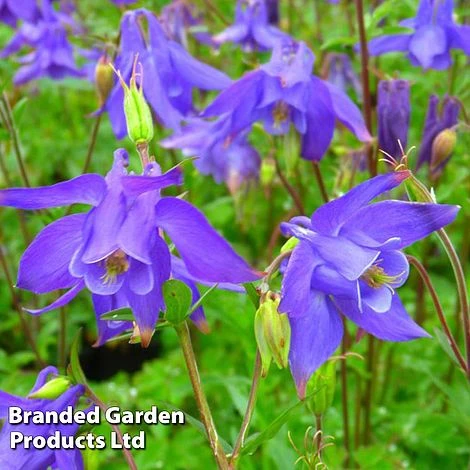 A pretty species Columbine from high in the Swiss Alps! Aquilegia alpina has a charming simplicity that makes it a delight to grow in rockeries, alpine gardens and borders. Nodding blue bonnets perch upon slender stems from late spring into early summer. This is a variable species, sometimes producing blue and white bicolour blooms. With a carefree habit, this dainty hardy perennial is best grown in groups and left to seed about to create trouble-free colonies, popping up among grasses and other perennials. Height: 80cm (31″). Spread: 45cm (18″).