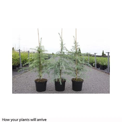 The Himalayan or Deodar Cedar makes a truly spectacular specimen. Its spreading branches form a large conical tree which demands plenty of space to be appreciated at its best. Cloaked in evergreen needle-like foliage, each branch tip has a gently weeping habit that makes a majestic silhouette in the landscape. Mature specimens may bear upright, oval shaped cones which slowly mature from green to brown, and can reach up to 12cm (5″) long. Once established, Cedrus deorara requires virtually no maintenance. Awarded a prestigious RHS AGM, this regal conifer makes a fine specimen tree for larger gardens. Height: 40m (130′). Spread: 10m (30′).