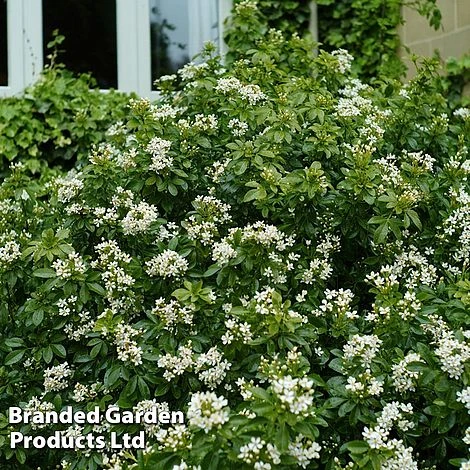 • Choisya Ternata (Mexican Orange Blossom) – Glossy, evergreen foliage and fragrant white flowers from late spring, and then again in late summer and autumn. A robust shrub that is very tolerant of difficult growing conditions, including coastal gardens. Height and spread: 2.5m (8′).