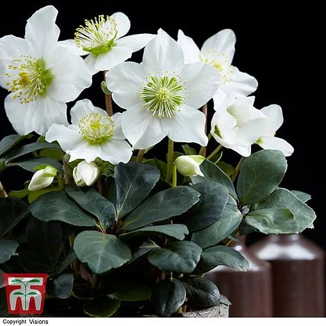 A particularly lovely variety of a classic herbaceous perennial. Helleborus niger ‘Christmas Carol’ bears gleaming white blooms with a central crown of prominent yellow stamens. Flowering from December through to mid spring, and often over the festive period, the blooms gradually develop a pink flush as they mature. Enjoy this evergreen perennial year after year. This Hellebore makes a fabulous addition to shaded borders where it will also attract pollinating insects to the garden.