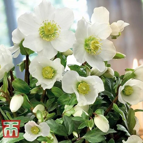 Snow white, saucer shaped blooms are flushed with green and pink, and slowly deepen in colour as they age. Set against handsome, glossy foliage, the delicate blooms of Helleborus niger are some of the earliest to appear in the garden. A stunning addition to shady borders and winter containers that will delight you year after year. Height: 30cm (12″). Spread: 45cm (18″).