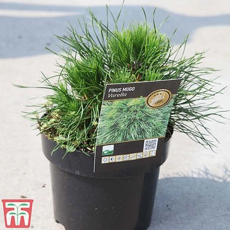 Pinus mugo ‘Varella’ has an unusual but pleasing appearance for a Pine. The glossy green, very slender needles consist of 2 different lengths. The previous years growth shows the longest needles, while the current growth appears in clusters at the tips, waiting almost until the following spring before extending in length. This hardy dwarf Pine forms a flattened, spreading cushion which retains its formal shape as it grows. A superb choice for creating evergreen ground cover, texture and structure in the rockery or a sunny border. Height: 1m (3′). Spread: 2m (6′).