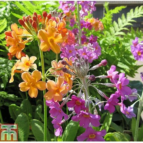 This RHS AGM species bears candelabras of mauve pink flowers in loose tiers around stiffly upright stems. Bee’s Primrose produces large rosettes of foliage that make good ground cover when planted in groups. Primula beesiana is a striking perennial that looks magnificent in the damp soils at the edge of ponds or dotted throughout bog gardens. Height and spread: 60cm (24″).